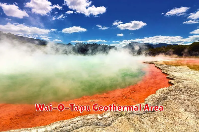 Located near Rotorua, Wai-O-Tapu is a geothermally active area showcasing a vibrant and otherworldly landscape. Witness bubbling mud pools, steaming vents, and brightly colored hot springs. The Champagne Pool, with its vivid orange hues, is a particular highlight.